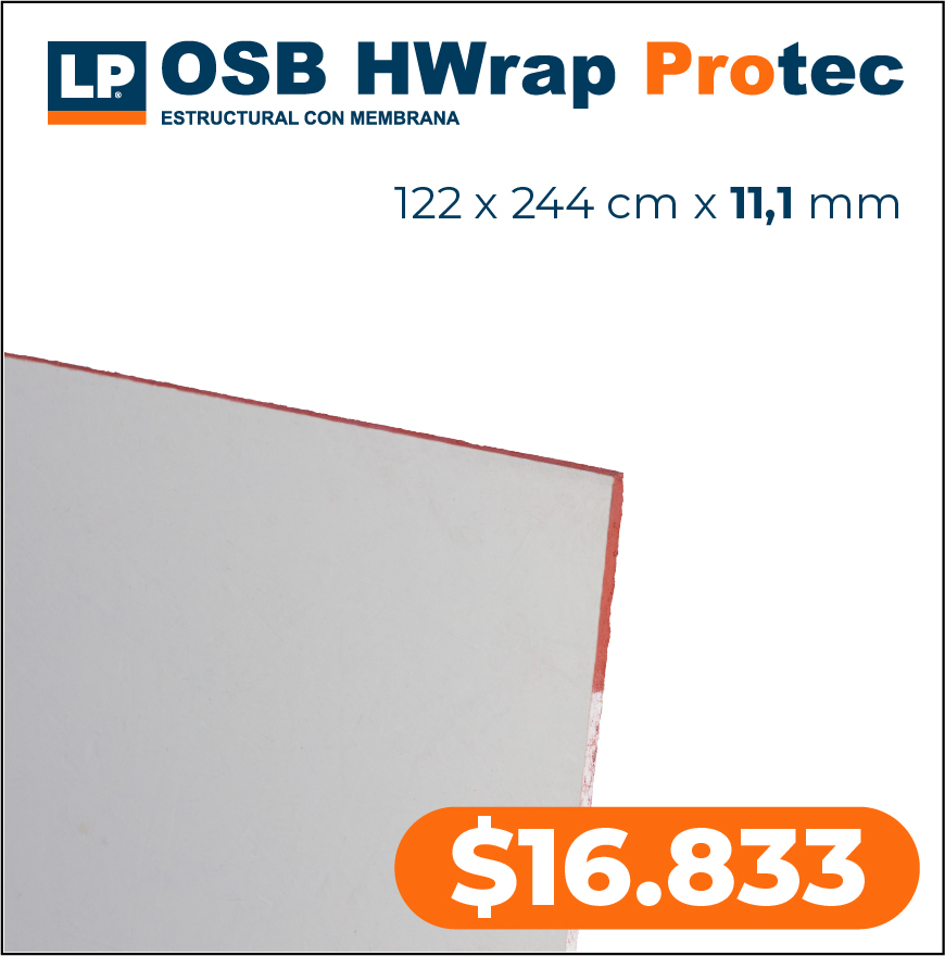 OSB HWrap ProtecTablero estructural certificado APA que incorpora una barrera hidrófuga en una de sus caras, con una membrana saturada en resina