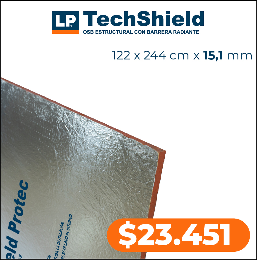 TechShieldLP Techshield es un tablero de OSB que cuenta en una de sus caras con una barrera radiante de aluminio,